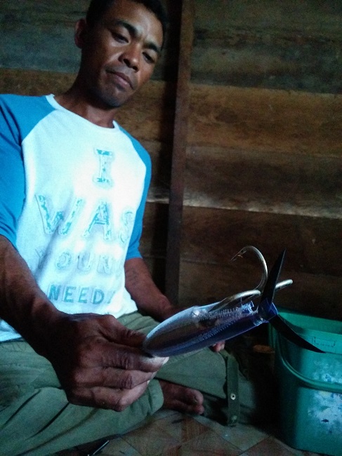 Along with tending commodity and staple crops, fishing is an important activity sustaining the livelihoods of Parigi villagers. Their everyday routines revolve around fishing. They will sail out to sea at daybreak. When they return, their wives will already be waiting on the shore to help carry their equipment and bring in the catch. At home, they will converse with fellow fishermen about fishing and prepare their tools. Fishermen form groups to assemble fish traps that cannot be assembled by a single individual. As a group, they maintain the regulation of fishing rules.
